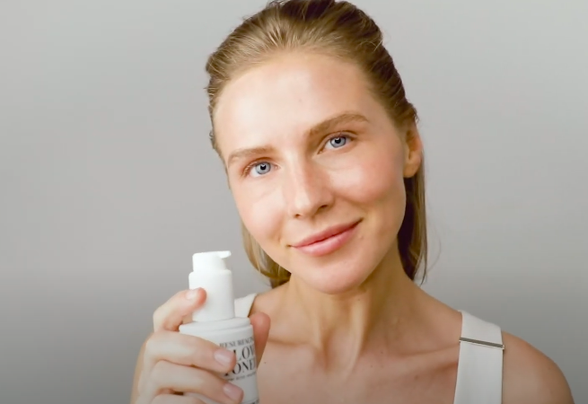 Змочіть ватний диск тонером або нанесіть засіб безпосередньо на долоні і протріть обличчя, шию та зону декольте, уникаючи ділянки навколо очей. Дайте шкірі висохнути, після чого нанесіть сироватку та/або крем.